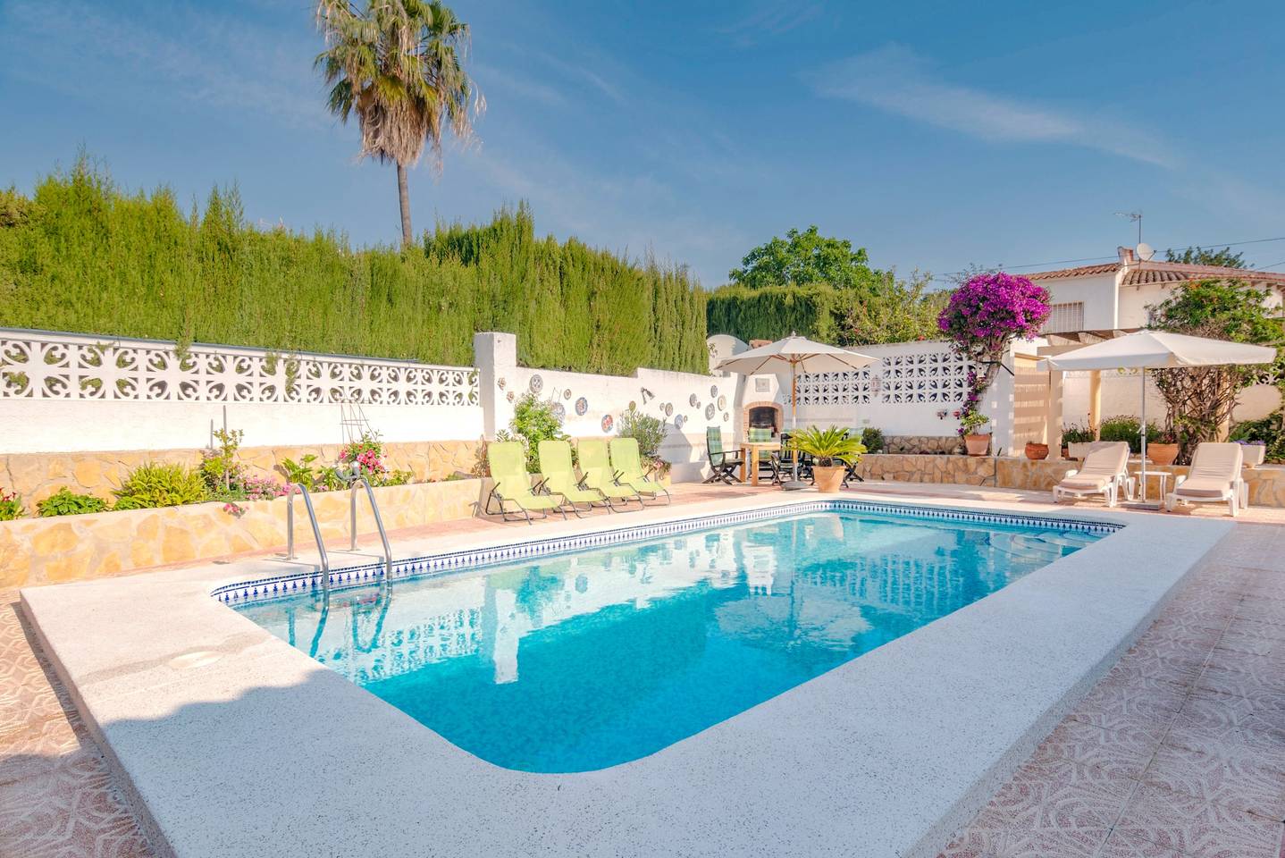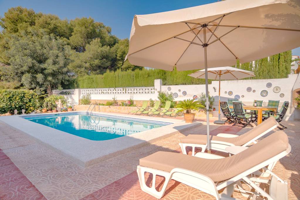 En la tranquila urbanización Ortembach se encuentra esta encantadora villa con un hermoso jardín paisajístico, vistas al mar y al Peñón de Ifach, piscina privada y varias terrazas. La villa tiene capacidad para hasta 6 personas y 1 niño de hasta 3 años. En la planta principal hay 2 dormitorios (el dormitorio principal está equipado con camas extra largas) y 2 baños. El tercer dormitorio con cuarto de baño se encuentra en el estudio en el sótano y se puede llegar desde el exterior. .