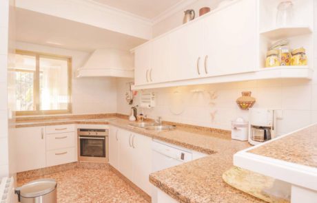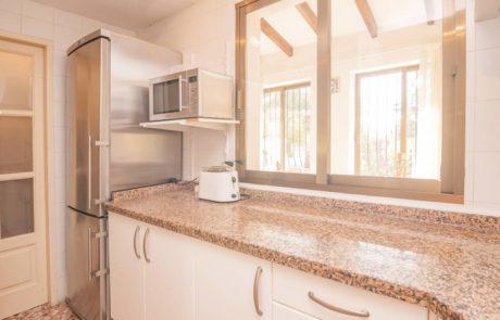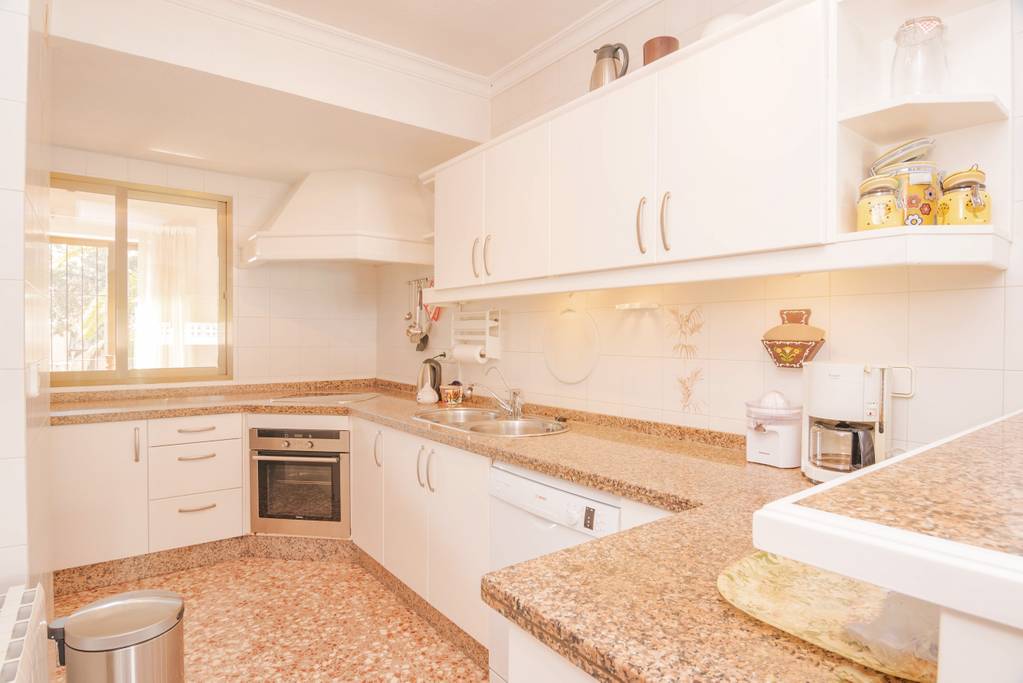 La cocina está totalmente equipada con nevera con congelador, vitro , horno eléctrico, microondas, lavavajillas, cafetera, tostadora, hervidor de agua, exprimidor y un mezclador (bar).