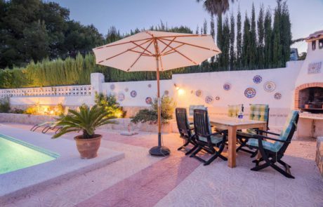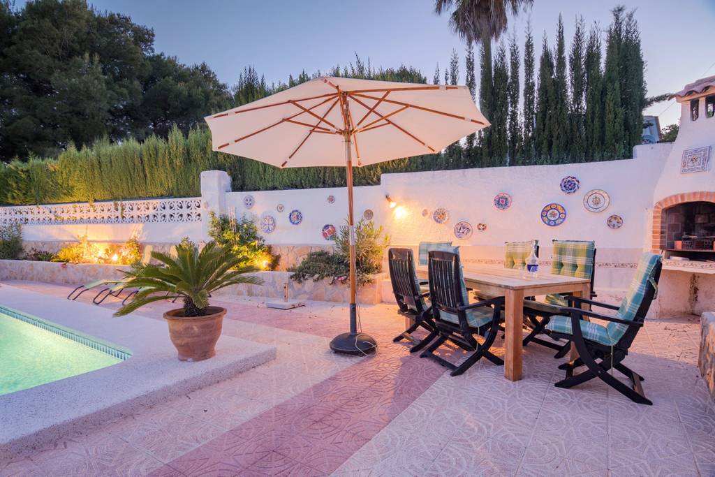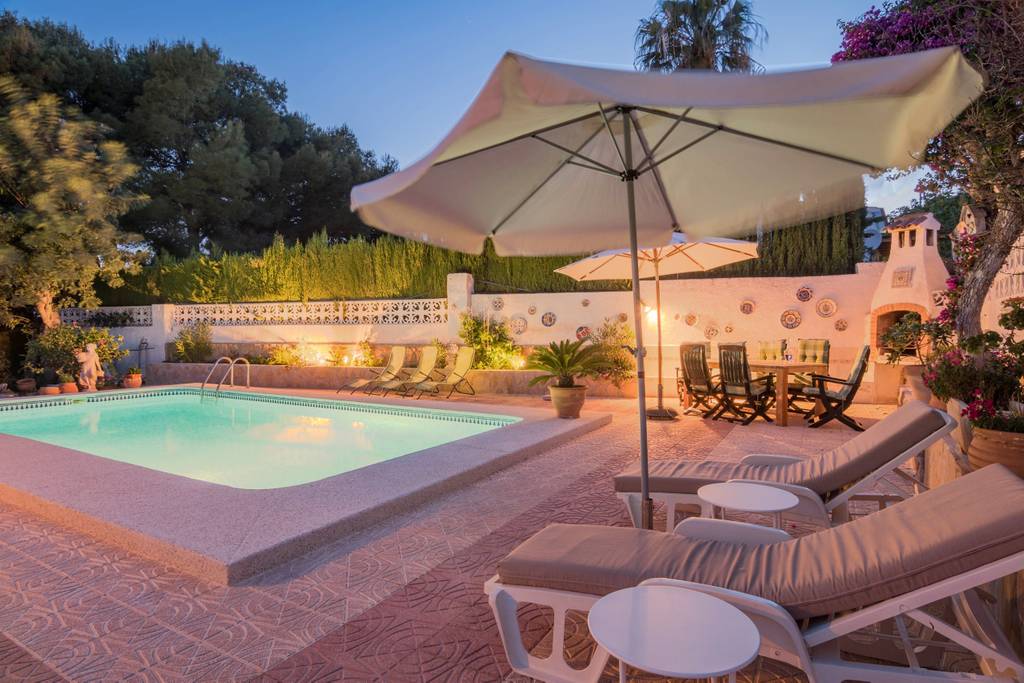Alrededor de la hermosa e iluminada piscina hay mucho espacio para relajarse en las tumbonas o para asar un pescado en la barbacoa.